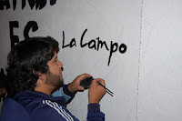 La jornada empezó pasadas las 23hs donde los compañeros dieron su asistencia a la “cita artística” en las calles Gregorio mayo y Moreno. Una de las principales esquinas céntricas de la ciudad de Rawson. Lo interesante del mural es que allí se pintó la imagen de la invaluable perla austral: "Malvinas".